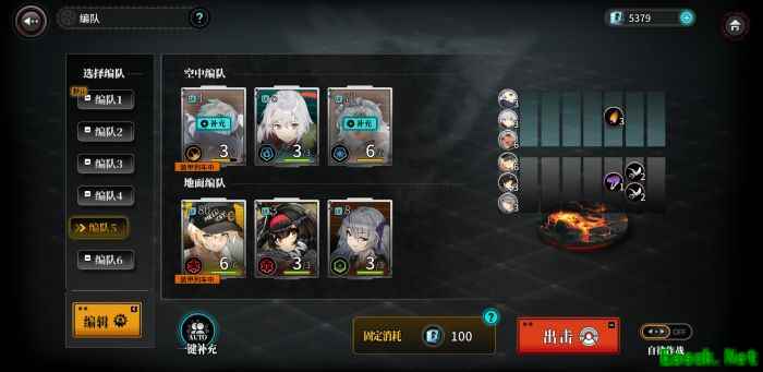 第五回合,侦察机进行最后一轮侦查,战斗机与侦察机并列吸引敌方的空中火力,若战斗机能警戒则进行警戒,若不能警戒不要使用会造成位移的技能避免遭到敌方地面防空的火力打击,攻击机进行后撤避免被敌方空中单位进行火力打击,吸引火力人员进入到boss的流刃一闪α的攻击范围内,其余可动的地面单位全员后撤,避免被攻击到,有输出能力的单位进行攻击。
