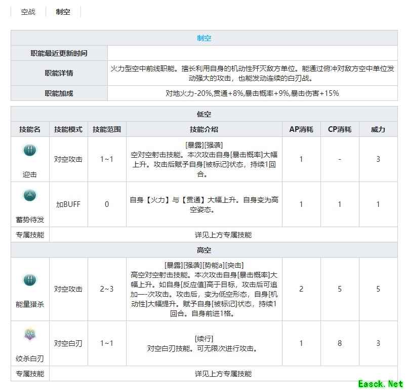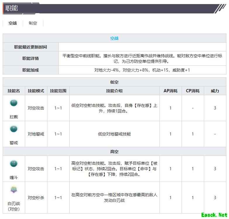 EX 侦查、空战、截击、制空、对地