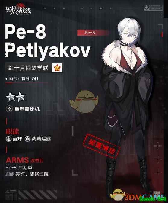 灰烬战线Pe-8怎么样?灰烬战线中很多玩家都追求最强的人形战机,有很多小伙伴都好奇Pe-8轰炸机的强度怎么样,今天小编给大家带来了《灰烬战线》Pe-8轰炸机介绍,感兴趣的小伙伴一起来看看吧。