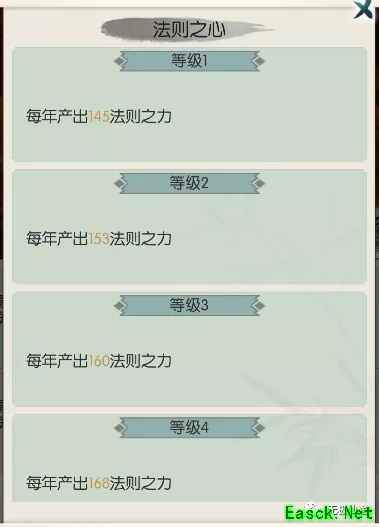 1、法则之心是一个产出法则之力的“建筑”,等级越高则每年产出的法则之力就越多。