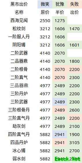黑市出价介绍: