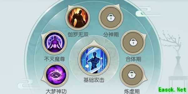 境界和招式。第五关强度是个分界点,所以第四关开始拿扫荡的钱买三个三阶自选招式大梦神功、不灭魔尊和锁心咒(根骨),两个buff一个输出;境界升到金丹境界。至此招式和境界就不用管了。