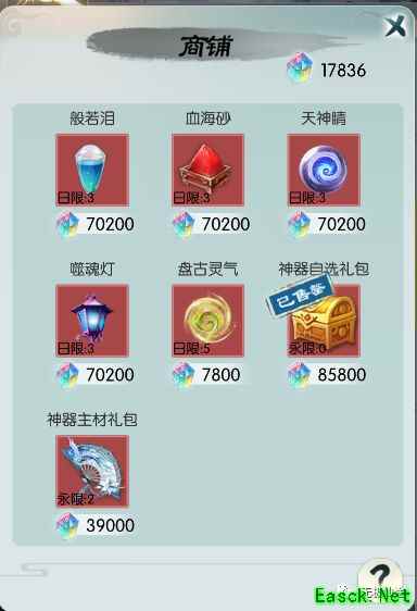 通关闯关和每日奖励获得的五色石,可以在本商铺进行兑换,包括不同的头像框、功法自选包、直升令自选礼包以及化圣的相关材料。当然这里面还有一个大奖,那就是神器自选礼包。