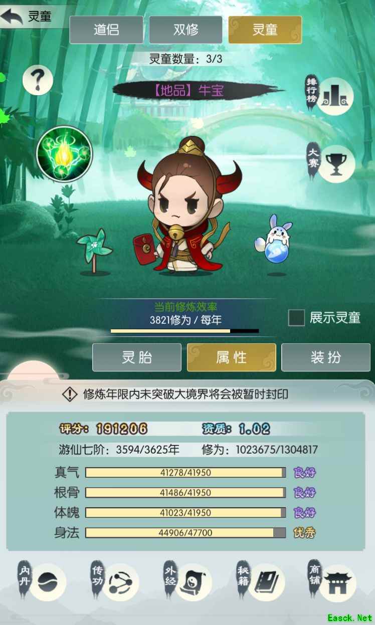 灵童所增加的属性也就是四维条,等级为一般,中等,良好,优秀四个级别。