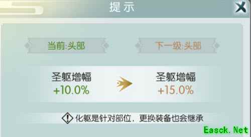 提升圣躯等级后,会对圣躯部件属性进行增幅。