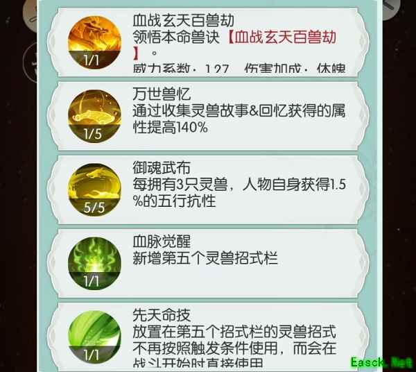 4.灵兽招式:云恨10,治愈术10,其他5