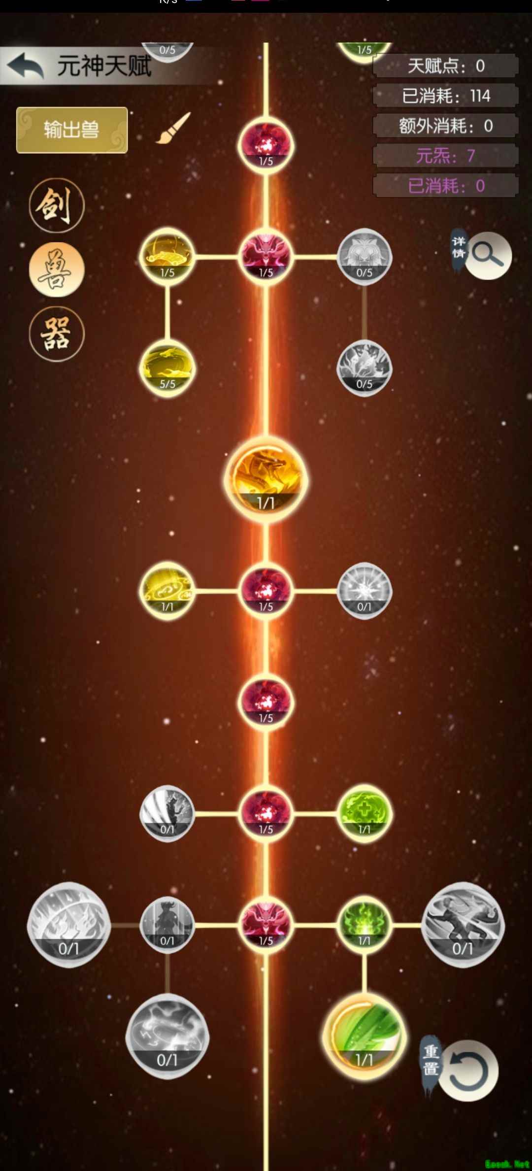 因为使用的是先天云恨,所以天赋和灵兽招式如下(云恨等级拉满):