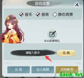 2、游戏设置中,就包含填写密令的位置, 输入上方9月最新礼包码,即可元宝、仙丹等奖励。