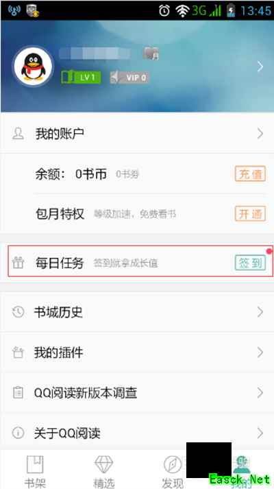 3、进入手机QQ阅读器最新版、QQ阅读器手机最新版我的功能管理后,可以看到每日签到的功能,这个每日任务就是手机QQ阅读器、QQ阅读器最新版签到的入口。