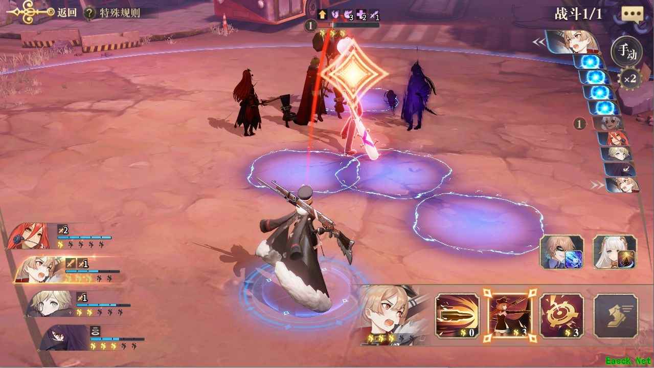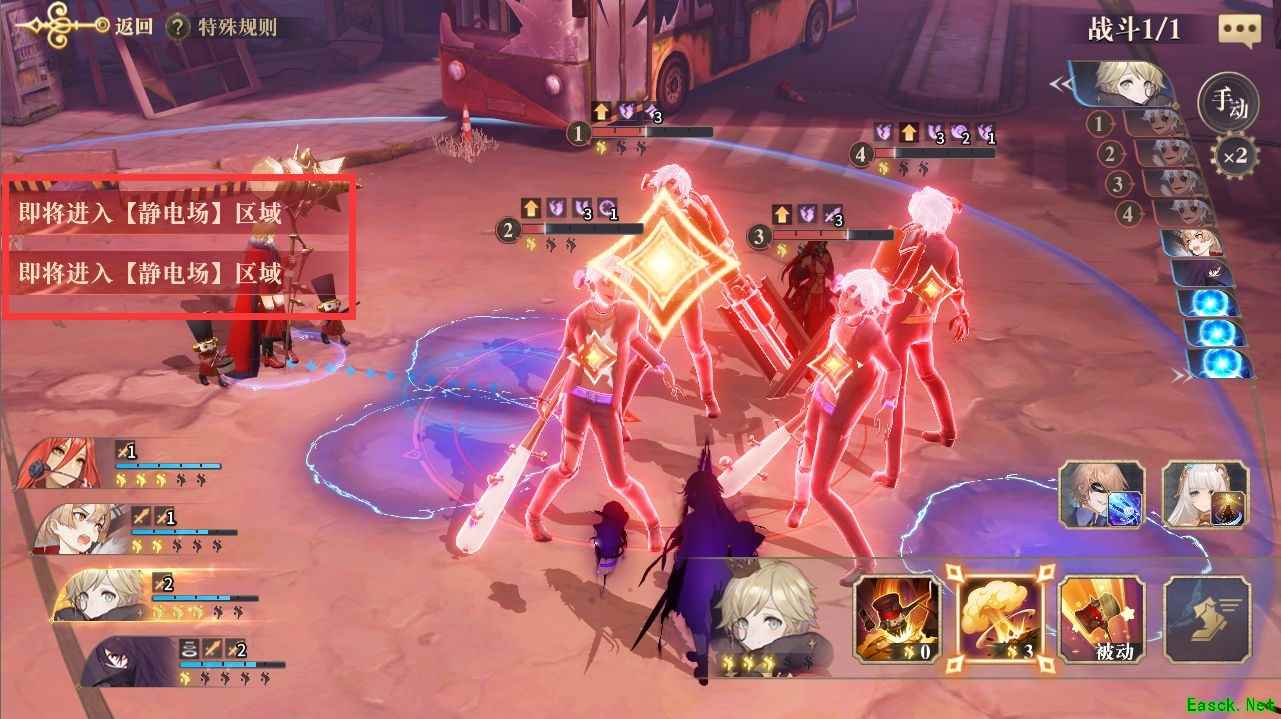 战斗中唯一要注意的就是静电场的位置,近战在选择目标时,一定要注意右边有没有提示“即将进入【静电场】区域”,如果攻击目标时一定会进入静电场,那么不攻击选择移动也是可以的,千万不要为了输出而硬抗静电场的伤害。