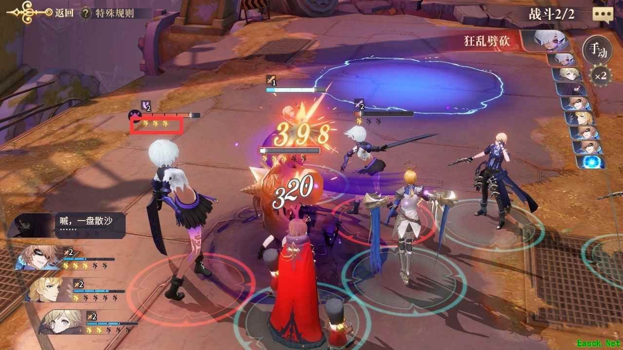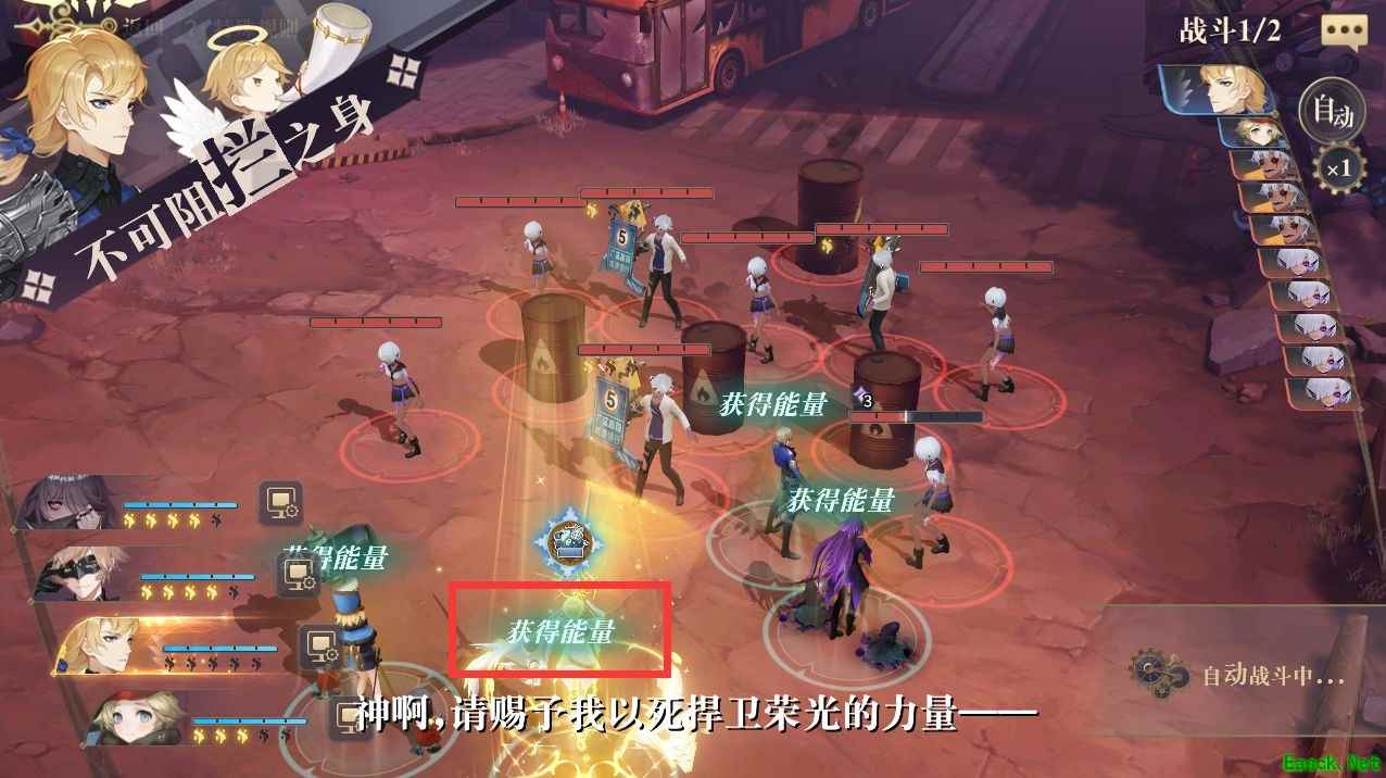 在战斗中,敌方的能量机制与我方一致,能量值显示在敌方的生命值下方。尽早击败敌方的高能量角色,可以让战斗更加安全。