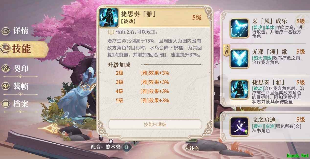 除此之外,部分幻书的技能也有增加能量的效果,比如《诗经》攸宁的被动技能,就能让她在治疗友方幻书时,为其增加一点能量,同样能增加能量的额外获取。