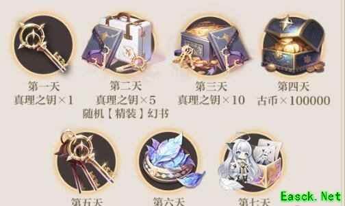 完成游戏内新馆主7日签到,即可获得共计21个[真理之钥]、100000古币、 200 [传世玉叶]、随机[精装]幻书和幻书[纯白幻页] !