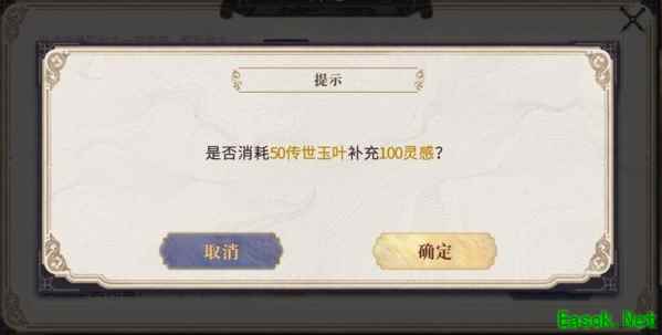 3、最后就是使用传世玉叶这种氪金货币来兑换灵感,第一次50传世玉叶兑换100灵感,第二次就要100传世玉叶兑换100灵感了。