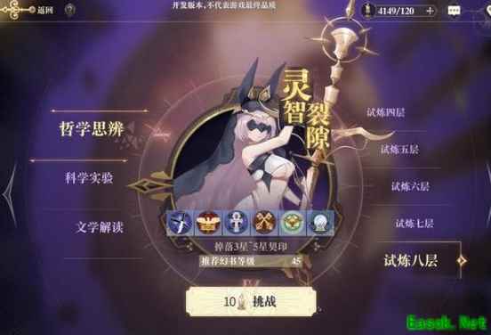 灵智裂隙一共三类关卡,各有八层。从第七层开始掉落5星契印,每次刷取需要消耗10体力。