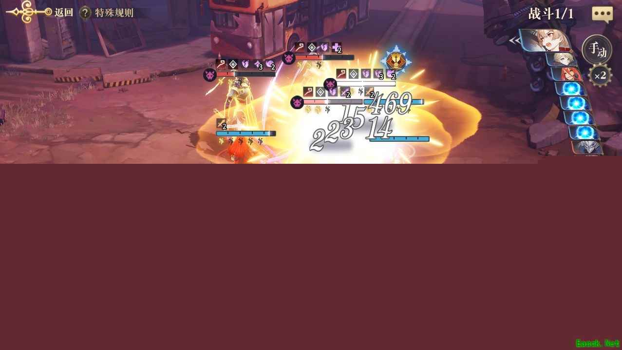 一般两轮爆发下来,怪物在攒够3点能量时应该只剩1只,如果超过1只,那么在敌人行动之前给我方靠近怪物的角色使用《沙之书》阿莱娜的支援技能,确保能扛过敌方的爆发。同时在另一个敌人附近使用《亚森·罗宾探案集》罗宾的援护,用假身挡掉另一只的爆发,其他角色分散移动到安全位置,只要扛过爆发就稳过了。本章支线任务还是比较简单的,大家看看打法就会的。