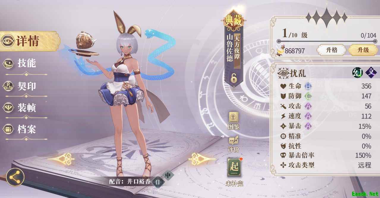 山鲁佐德面板属性各项都很平均,没有特别出彩的点,但也没有明显缺陷,对于一位控制幻书,初始速度有112点,比较优秀。