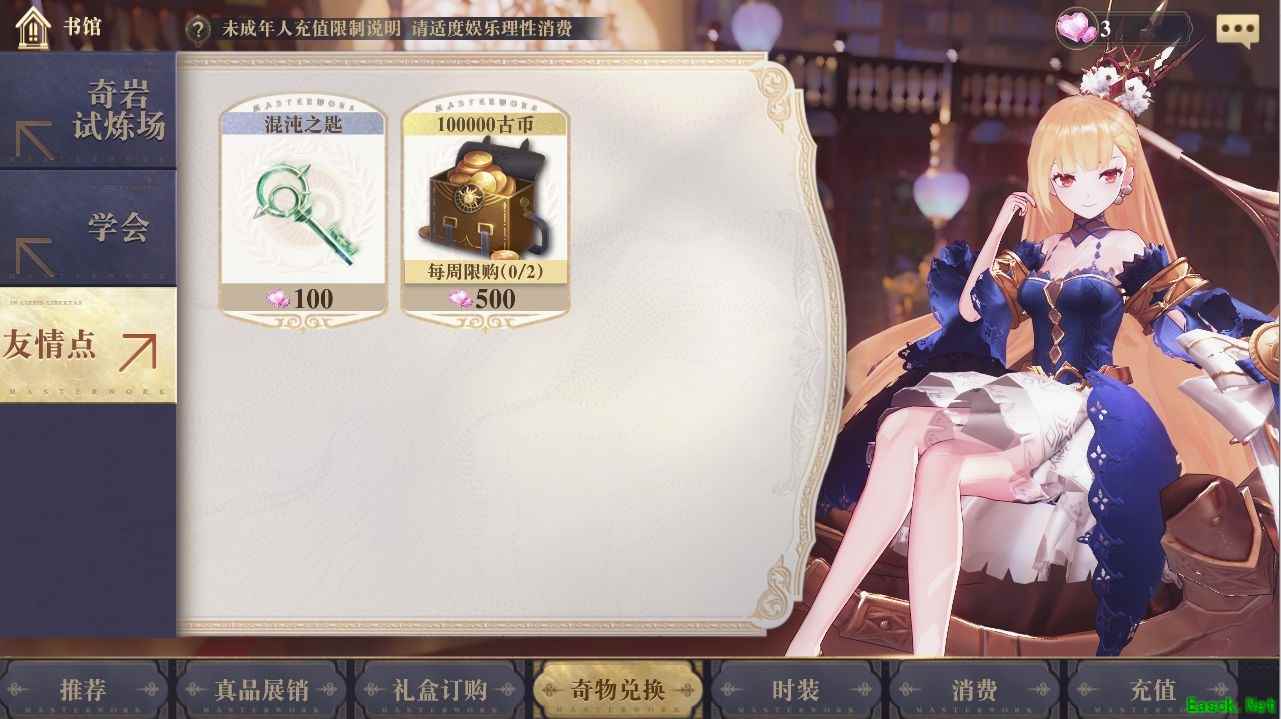 好友使用我们的助战幻书后,我们将后的友情点,友情点可不是用来见证你们感情的信物,友情点有个很重要的作用,可以画中店里兑换资源,混沌之钥和古币都可以使用友情点购买。