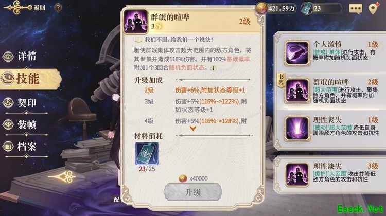 在《幻书启世录》中,技能是可以直接升级的,不过需要解锁获取技能升级材料的试炼荒庭,才能稳定获得升级技能所需的素材,试炼荒庭会随着等级提升解锁,还无法升级技能的馆主不要着急,先推进剧情吧。