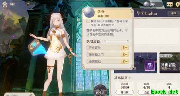 2、获取学分需要先加入一个学会,参加异世冒险、雅努斯之门和命题挑战3个活动获得不定量学分