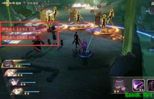 游戏开始时,会提示玩家引诱敌方进入火焰地形。我们只需乖乖照做就好,本关敌人的伤害和血量都极高,按照我们解锁支线的等级,想要“拼伤害”通关是根本不可能的。所以我们开局直接移动幻书,根据下面图片的站位,肉身挡住不死者。这里有一个小细节,不要冲过头了反而让自己进入火焰区域,火焰伤害极高,2下我们就被烫死了,别问我怎么知道的。