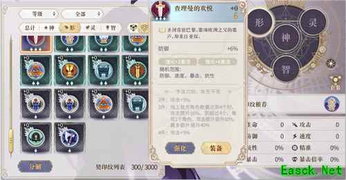 除此之外,如果你主玩召唤队,也可以带【查理曼的欢悦】,属性优先暴击率。查理曼的欢悦有着很高的攻击力加成效果,可以为伊舍那的炸弹提供更高的伤害上限。