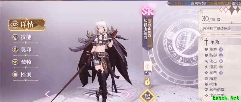 幻书启世录中,基督山伯爵作为一名美少女角色出场,立绘还是非常好看的。基督山伯爵是一名单体文属性的SR稀有度幻书,伯爵的成长上限并不像SSR幻书那样高,但是前期比较容易获取该角色并培养进行升格,不需要玩家投入大量精力就可以有较高的作战能力。