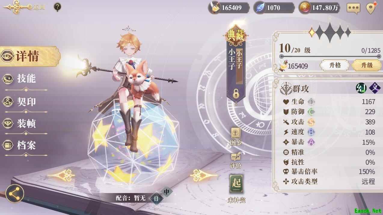 小王子的定位是一个持续性输出的主C,他有着非常优秀的攻击S成长,成长性在众多典藏幻书中也是非常少见的,在特定的关卡里有着不可替代的输出,使用他就能拥有惊人的普攻伤害。