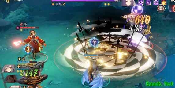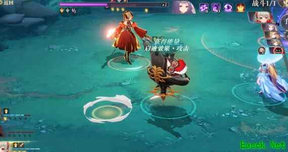 援助用沙之书,先打右边两个大招直线攻击的小怪,然后打中间的白衣小怪,之后打棋经,最后打红衣小怪