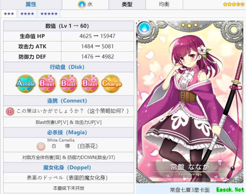 常盘七香,水属性平衡型,用前平衡型用后攻击型的角色。