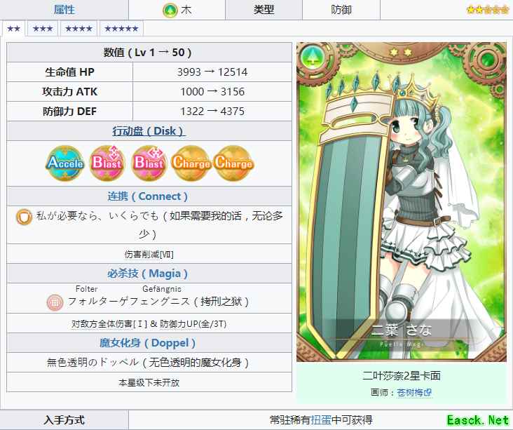 二叶莎奈是《魔法纪录》中登场的一名魔法少女,无法被普通人看见,只能被魔法少女所发觉。在游戏中是防御型的一名角色,在对敌方造成范围伤害的同时还可以为己方全体提高防御力。那么莎奈有什么技能呢?属性方面又如何呢?一起来看看吧。
