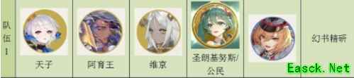 队伍1:利用龙妈增伤、菲比尔大招、卡琳的全体额外普攻,使得往世书可以在一回合内留下多个结界,最后由初音书界技能收尾,争取在第一回合内打出高额伤害。(启迪也可用神之启迪)