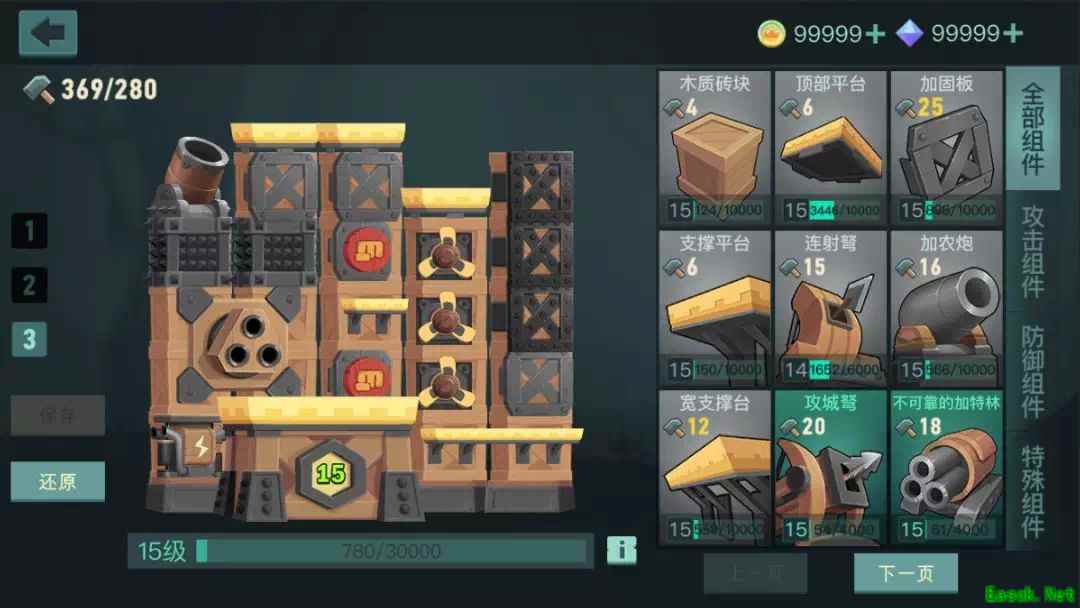 这是游戏中非常重要的塔防玩法,这里城堡有不同的组件赋予不同的特性。