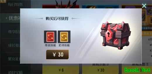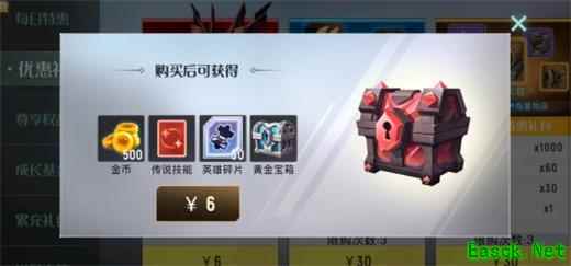 包含金币500+1传说技能+30英雄碎片+黄金宝箱(蕴含20技能(普通)+10稀有技能)