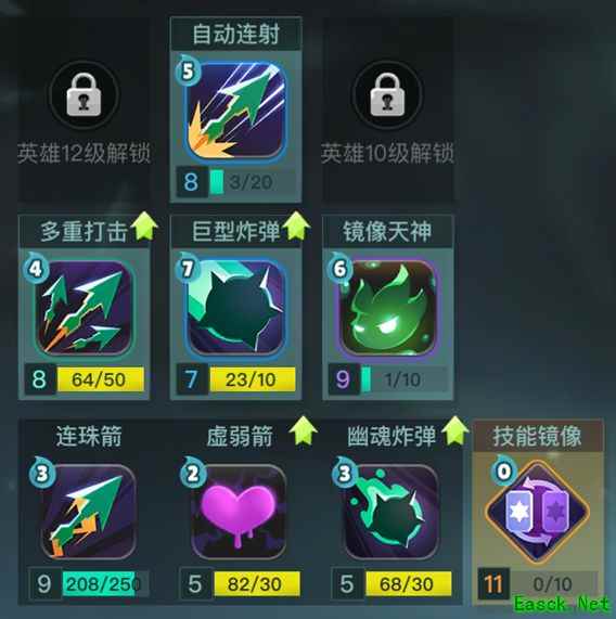 技能释放顺序:技能镜像→镜像天神→虚弱箭→自动连射→多重打击