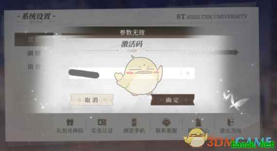 3、点击下方的礼包兑换码,弹出激活码输入框。