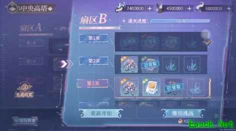 [中央高塔]中存在A、B两个不同的扇区需要挑战,一个编队的画灵只能参与一个扇区的战斗。玩家需准备两组画灵,分别在AB扇区中连续挑战8个关卡。