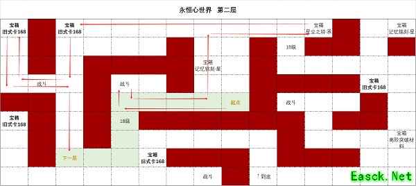 1、永恒心世界第二层中有9个宝箱,散落在地图的不同地方,玩家可以根据上图的路线走。