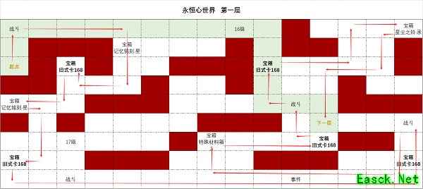 1、永恒心世界第一层中有8个宝箱,玩家可以参考上图路线走。