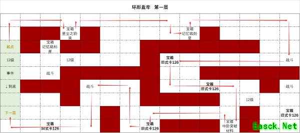 1、环形监牢第一层中有九个宝箱,玩家可以按照上图红色箭头的位置走,可以拿到全部的宝箱。