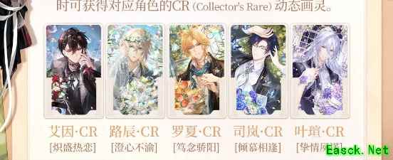 活动奖励:花朵【盛放】时即可获得对应角色动态收藏画灵:艾因CR【炽盛热恋】、路辰CR【澄心不渝】、罗夏CR【笃念骄阳】、司岚CR【倾慕相逢】、叶瑄CR【挚情夙诺】。