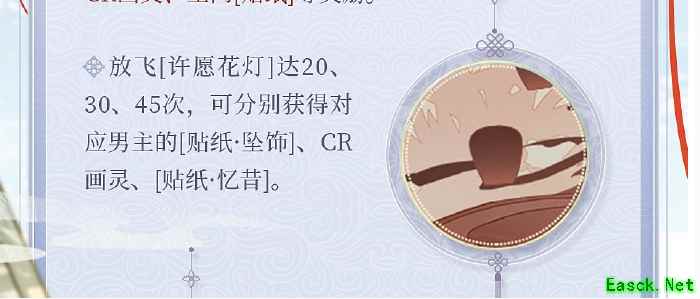 1、选择男主,一同放飞[许愿花灯]达到特定次数,即可获得对应男主动态CR画灵、空间[贴纸]等奖励。