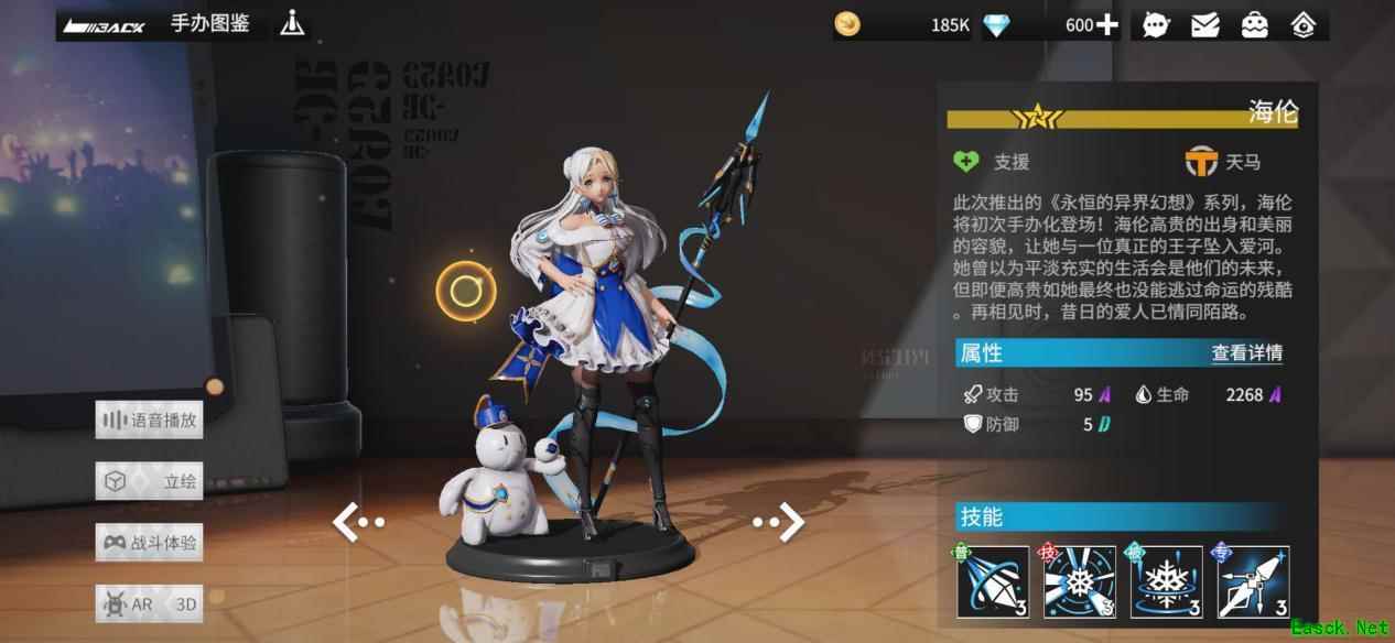 海伦由于拥有目前版本所有手办中最强的群体治疗能力,因此无论其他站位选什么手办,都可以作为支援手办的首选角色。她的支援能力,除了为其它手办恢复血量,还能增加其它手办的大招威力和能量恢复效果,让其它手办更高频率的释放大招,进一步加强输出能力。大招额外附带的冰霜效果,还能降低BOSS的攻击速度。最强支援没有之一。