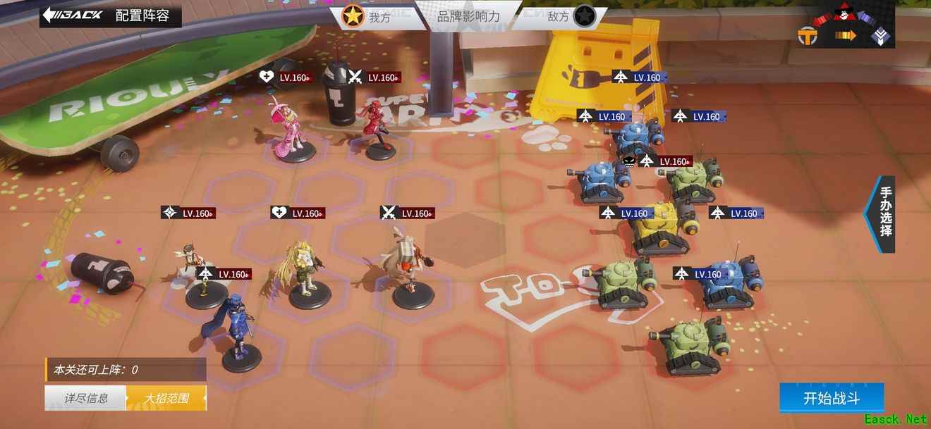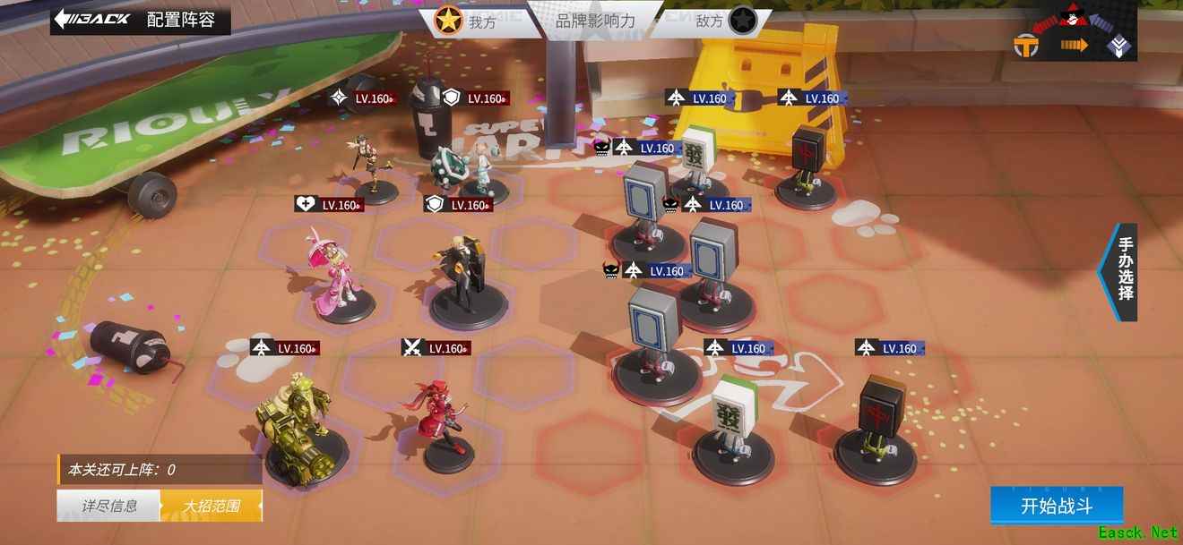 这一关boss的思路就是对着黄色大坦克的一排空出来留个召唤物,另外的一排远程手办放在后面。