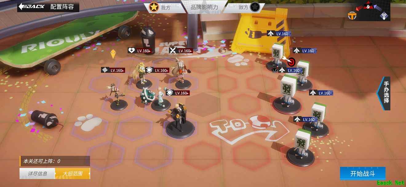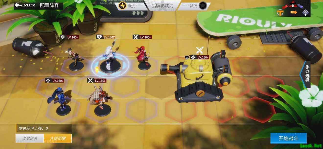 把中间的一排空出来放召唤物,其他的位置放置全输出的手办,辅助角色一定要是海伦,需要额外充能让技能释放的召唤物衔接上来,不然容易被秒。