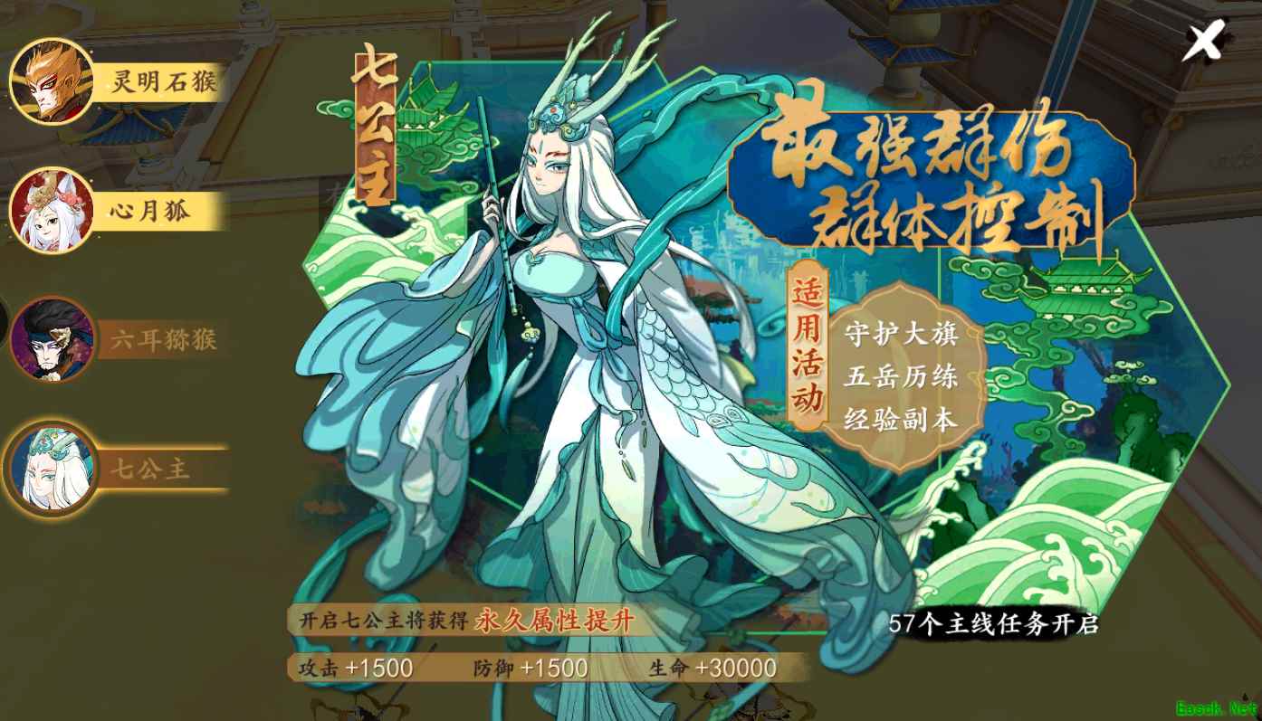 东海龙王的七公主。拥有超高的输出及远程大范围群伤,精通各种控制技巧,任侠豪爽,不甘屈服,远程群伤和控制兼备的她,是在战斗中的强力输出。