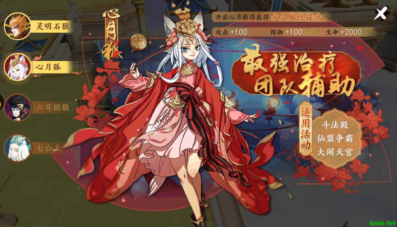天赋异禀的狐族少女。拥有强大的群体治疗能力,精通远程攻击技巧,有一颗仁慈善良的心,曾为天庭的二十八星宿之一,远程及治疗能力兼备的她,是战斗中的一大保障。