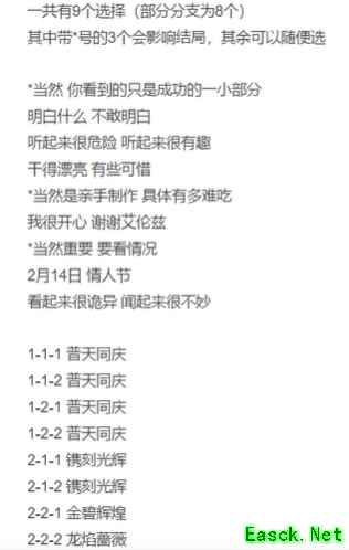 除了龙焰蔷薇必选222,其他三个结局各选一次第一项就行了。