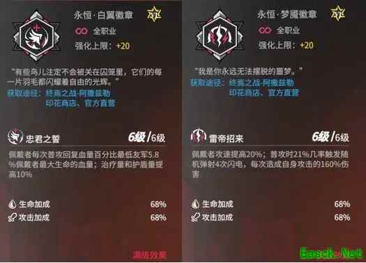 徽章方面白翼徽章更偏向团队续航,而梦魇徽章增加攻速的属性,则可以让皇后更快速地集火秒杀敌人。