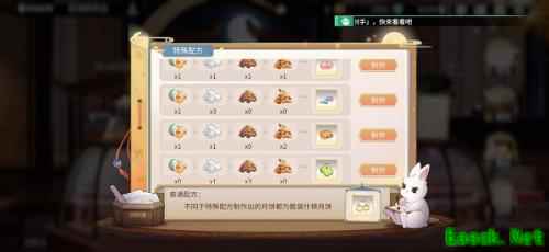 1.团圆月兔:蛋类*1+糖块*1+豆子*1+果仁*1